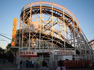 The Coney Island CycloneUnity StoakesNov 17, 2005ShareSadly, this park and this ride will soon be turned into a Disney-style tourist zone. Get to Coney Island as soon as you can. The Cyclone is closed for the season, but the bumper cars are still going! PreviousNext