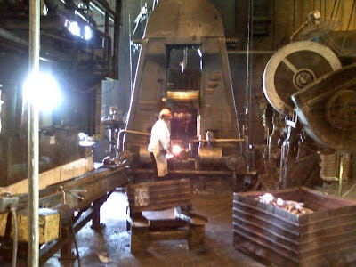 It was cool to see the process of how something seemingly so simple is produced. Seeing it, you realize how much design, energy, work, labor, and time goes into making everything from bolts to ball-bearings to hooks. Each piece requires an entire team and process and is forged from hot steel, pressed in a massive die, and then the steel is cooled, heated, cooled and heated again, cleaned, tumbled, painted, etc.