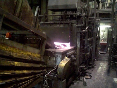 But first some pictures I took from my phone when I got to tour the company my brother works for back in Cedar Rapids. My brother PS (PatrickSpirit) is one of the mechanical engineers that designs the presses and machines that forge steel parts like the huge shackle below.