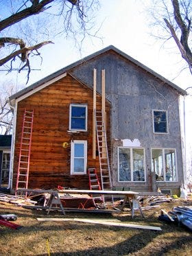 The Stoakes Hughes Farm is finally making progress during what has been a -- no kidding -- 20 year renovation job. The good news is that over the last year, major progress has been made. It's moving along so quickly now, I don't even recongize some of the rooms. Here is a picture from over a year ago where you can see the old structure of the 125 year old farm house. Click the link below to see new pictures and how the house project has progressed over the years: