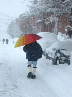 My brother Cayenne took this picture yesterday during the blizzard of 2006. It was a fun Sunday Snow Day in New York City. If you haven't been to NYC when it is snowing, there's nothing quite like being here during the first 12 hours of a big snow. The city seems to take on a collective soul for a few hours as everything slows down. As the snow melts today however, everything is pretty much back to normal. The City's calm has already started to transform back to its frenetic pace and the hustle and bustle of everyone and everything is starting to come back with each thawing inch.